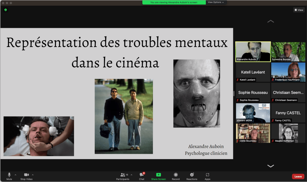 Résumé: Les connaissances en matière de santé mentale sont en constante évolution. Mais ces dernières ne concernent pas simplement les patients et les soignants. De nombreuses sphères abordent aujourd’hui régulièrement cette question, restée longtemps tabou. Durant cette présentation, nous analyserons le rôle du cinéma dans la démocratisation des connaissances liées à la souffrance psychologique, ainsi que son impact sur les patients et leur parcours personnel.